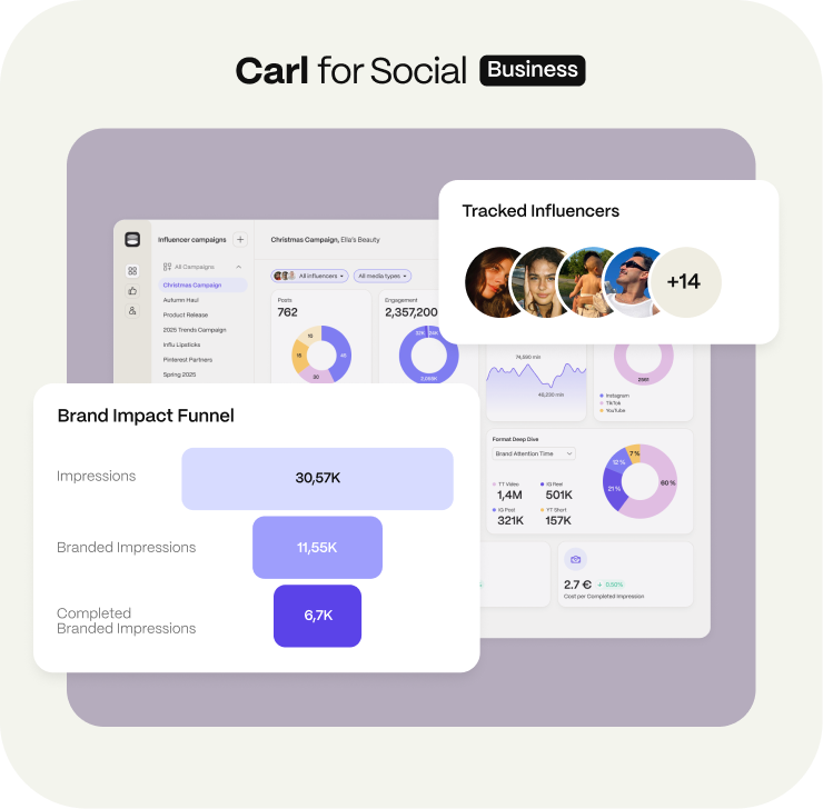CARL for Social Business je český nástroj pro řízení a vyhodnocování influencer marketingu. Umožňuje značkám analyzovat výkon kampaní napříč sociálními sítěmi a efektivněji pracovat s daty v reálném čase.