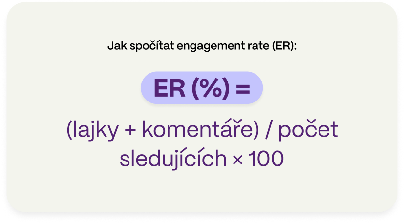 Základní vzorec: ER (%) = (lajky + komentáře) / počet sledujících × 100