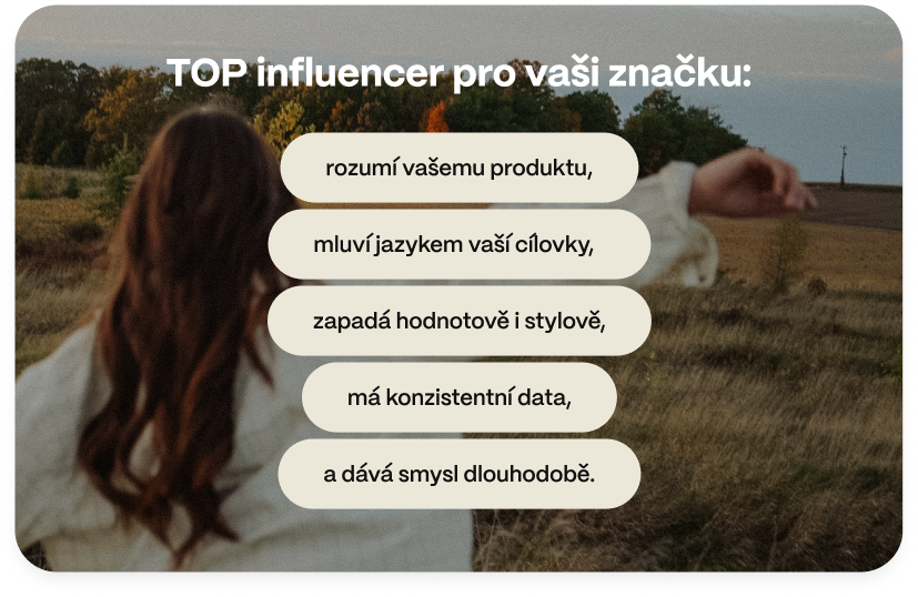 Jiný influencer se hodí pro budování důvěry, jiný pro vysvětlení produktu a jiný pro výkon. Teprve poté dává smysl hledat konkrétní tváře.