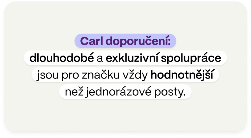 💜 Carl doporučení: Dlouhodobé a exkluzivní spolupráce jsou pro značku vždy hodnotnější než jednorázové posty.