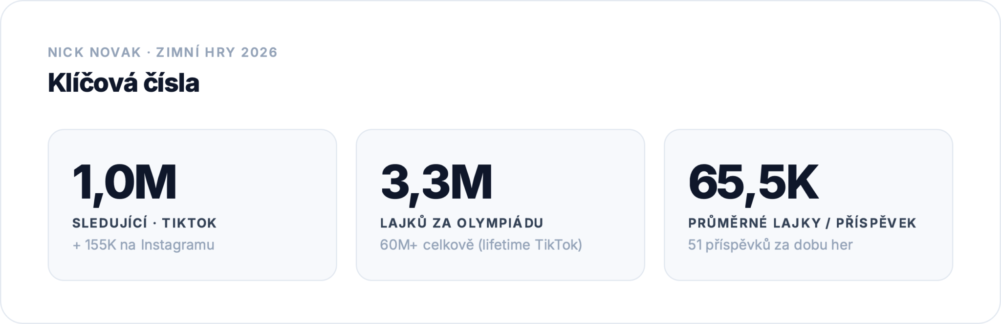 Novakův příběh ukazuje zásadní změny v tom, jak dnes funguje viditelnost sportovce. Nick skončil bez medaile a bez pódia, přesto byl na sítích atraktivnější než řada českých sportovních hvězd. Analytická platforma SGIE po hrách pojmenovala tento posun výstižně: hodnota sportovce dnes stojí na osobnosti, autenticitě a vztahu s jeho publikem (především na jeho profilech na sociálních sítích), nikoliv pouze na umístění v závodě.