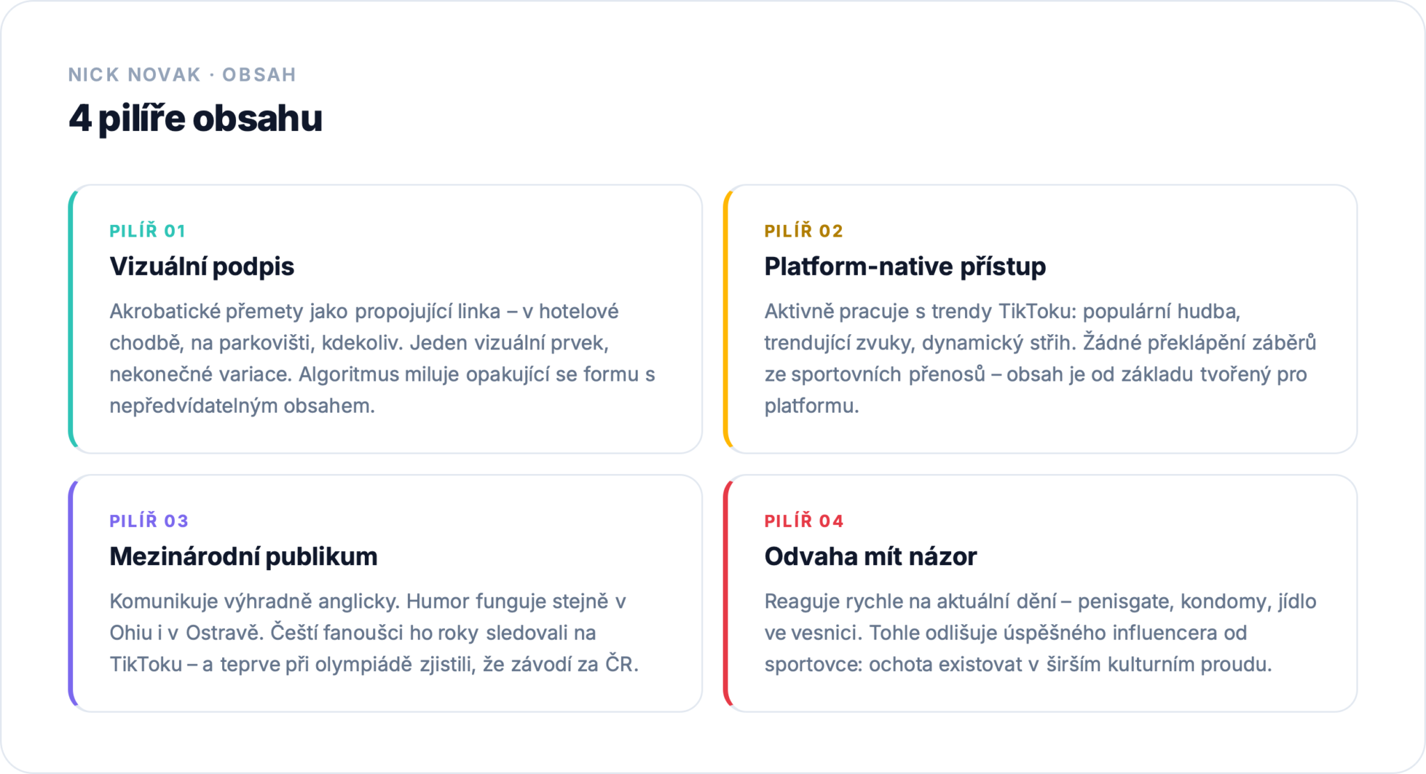 Třetím a možná nejdůležitějším pilířem je odvaha komentovat aktuální dění a nebát se mít názor. Tohle je klíčový rozdíl mezi sportovcem a influencerem. Olympiáda přinesla řadu témat, která přitáhla pozornost celého internetu, a Novak na ně reagoval rychle a vtipně.